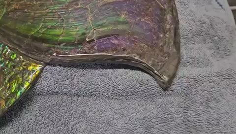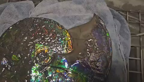 This incredible Alberta Ammonite was mined by the Alberta Fossil Family right here in our province! This Ammonite is a full rainbow fossil showing every color from red to purple!